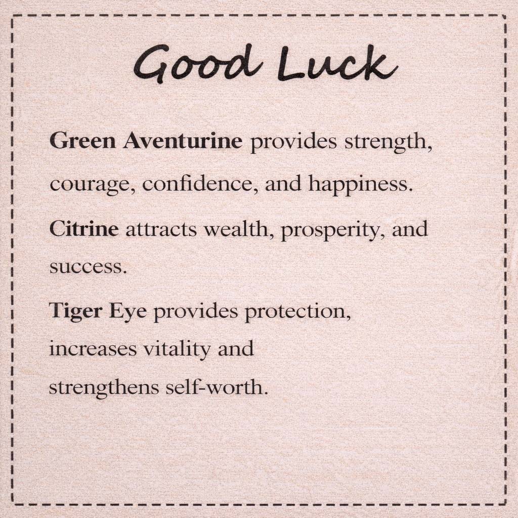 The Good Fortune Balance Bracelet brings together a carefully considered selection of natural gemstones, each chosen for its symbolic associations rather than appearance alone. The composition reflects a long-standing belief found across Eastern traditions: that balance, steadiness, and intention shape the way we move through everyday life.